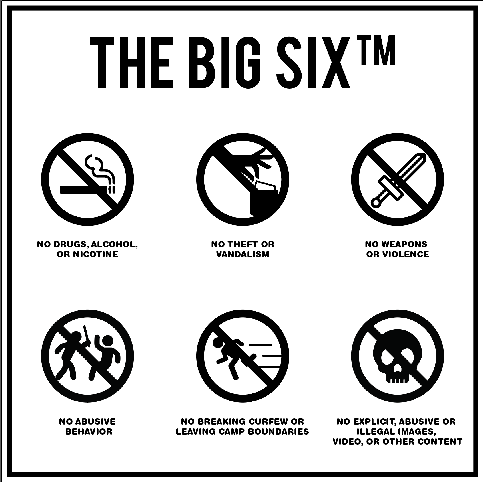 In order for Milepost35 MTB Camp to be the amazing place that it is, we rely on a set of simple but important rules that help create a positive experience for every camper. We lovingly refer to these six core rules as The Big 6™.
